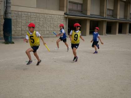 体育科の学習では,「リレー」をしています。