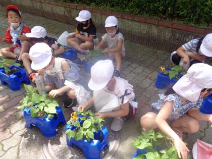 元気に育ったアサガオを抜く際には子どもたちから「かわいそう」という声も聞こえてきました。