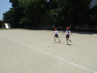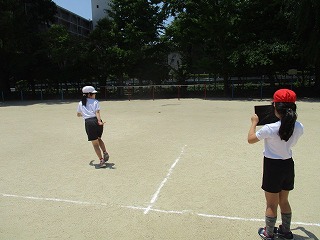 友だちのバトンパスは見ていたけれど,自分のバトンパスの様子を見るのは初めてです。教室に戻ってから,グループで録画した動画を見ました。上手にできていること,課題のポイントを見つけられたようでした。