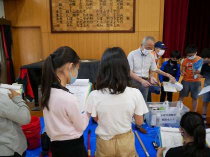 次に,山階小学校にある備蓄倉庫には何があるのかを実際に見させていただいている様子です。