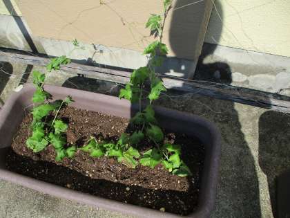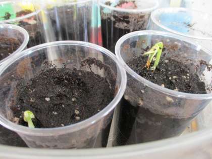 苗の方は毎日たっぷりの水をあげているので巻きひげが伸び,ぐんぐん成長しています。種の方は土が乾かないように水をやると1つ2つと発芽してきました。毎日のお世話の大切さを実感しています。