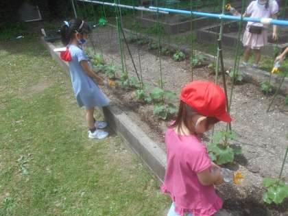 花が咲いたことに気がついた子は毎日欠かさず水やりをして,きゅうりの様子をじっくりと見ていたようです。