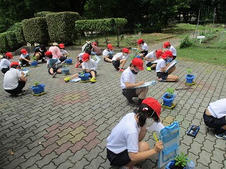 理科の学習で,自分が植えた植物の観察をしました。