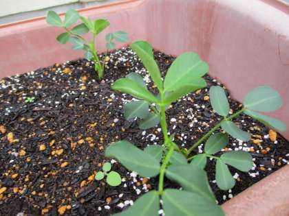 5月の末にまきなおした落花生の種が少しずつ発芽してきました。葉っぱを広げて日に日に大きく成長している様子を見て,子どもたちは「すごいね!」と大喜びです。