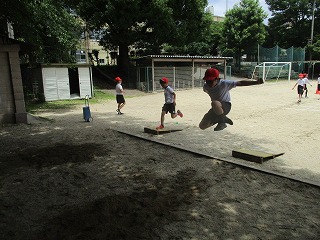 「片足踏み切り,両足着地」,「最後にバーンと遠くへとぶ」ことを意識しました。