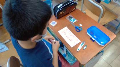 5年家庭科の学習では,裁縫の学習が始まっています。