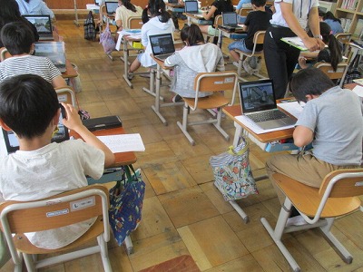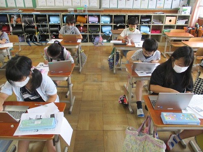 今日は,「工場が多いところ」「山にかこまれたところ」「住宅が多いところ」「田や畑が多いところ」から一つ選び,GIGA端末を使って調べ学習をしました。