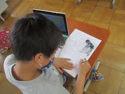 グーグルマップの航空写真やストリートビュー機能を使って調べることに慣れてきました。工場が多いところを調べている子は「久世工業団地の近くには,高速道路がある。道は広い。なんでやろ〜。」と同じところを調べている子と話しています。「あ!もしかして,工場の荷物を運ぶトラックが多いからかな?」などと,素晴らしい気づきをもつ子がいました。