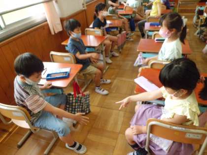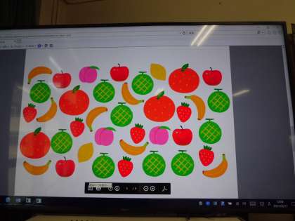 2年生になって初めての英語活動でした。1〜10までの数字の英語を聞いたり言ったりしました。また,果物の数を当てるゲームや友だちと指の数を当てるゲームなどをしました。とても盛り上がっていました!