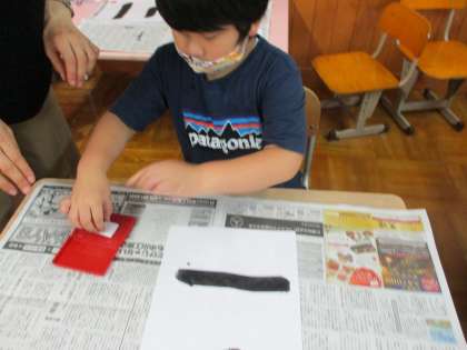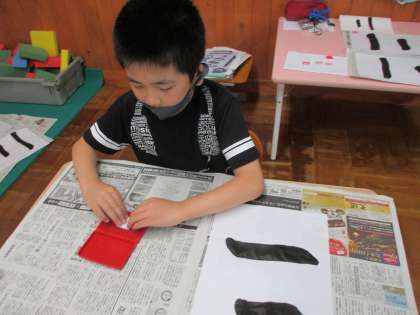 最後に図画工作の時間に作った名前スタンプを押して仕上げました。