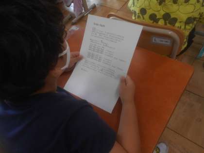 先日は歌詞カードを見ながら聴きました。英語の歌詞になっている部分もあるのですが,歌を聞き取り,小声で歌っている子たちも大勢いました。