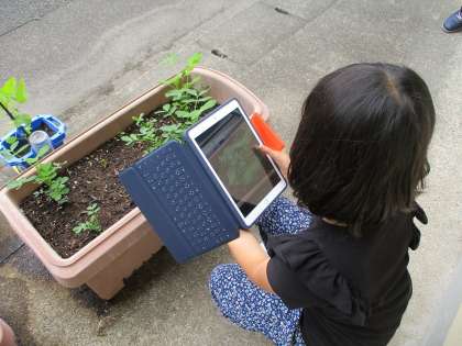 今日は生活単元の時間に落花生の成長を観察しました。まず,タブレットを使って落花生の写真を撮りました。3回目なのでみんな手慣れたものです!