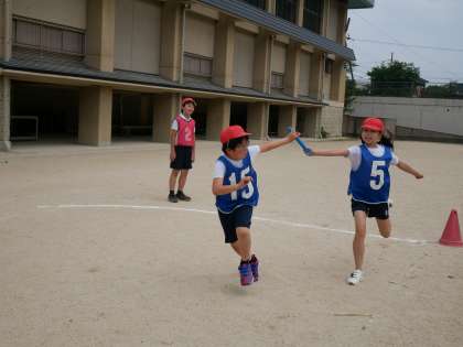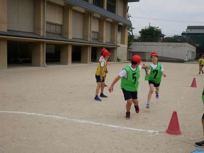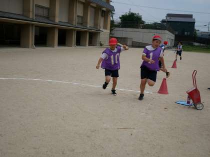 各チーム,チームのタイムを縮めるために工夫を話し合い,互いにアドバイスし,声を掛け合って学習してきた子どもたち。