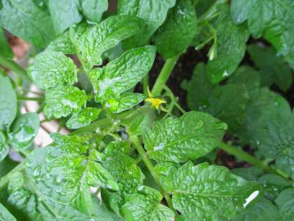 4月に種をまいたミニトマトですが,今日水やりに行くと・・・何と2つ花が咲いていました!!今年は雨の日が多く,なかなか花が咲かなかったので心配していましたが,やっと咲いて一安心です。