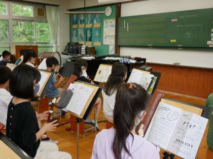 まだ全員では吹けず,一列ずつではありますが,久しぶりに友達と一緒に音を出して吹け,良かったですね!