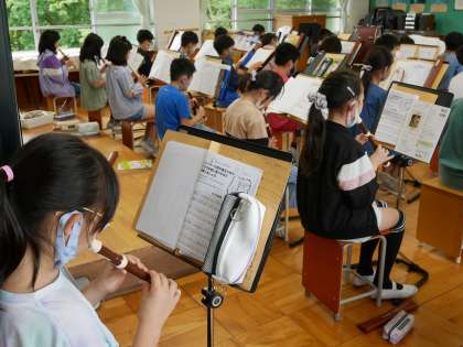 音楽の授業では,緊急事態宣言が明け,やっとリコーダーの音を出して吹けるようになりました。