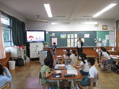 グリーン先生との外国語活動で,英語で自己紹介をしました。