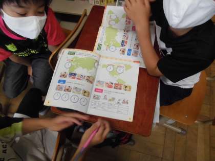 外国語の授業で自分の好きな時間とその理由を相手に伝える活動を行いました。理由を伝えるのが難しく苦戦していましたが何とか伝わるととてもうれしそうでした。