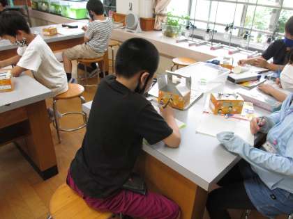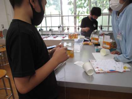 3年の理科の交流の授業で「音のふしぎ」の学習をしています。今日も,音の大きさによって,ものの震え方はどう変わるかを,実験で調べました。実験キットを組み立て,実験をし,結果をプリントに記録しました。見たり触ったりして震えの大きさを確かめることに,興味津々で取り組んでいました。