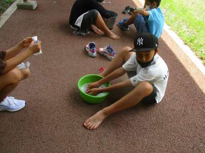 家庭科の「夏をすずしくさわやかに」の単元で靴下を手洗いしました。