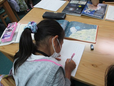 図鑑や科学読み物を読んで,初めて知ったことをメモします。子どもたちは,「へぇ!」「そうやったんや!」「知らなかった!」など,興味深そうにノートにメモしていました。