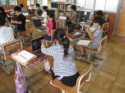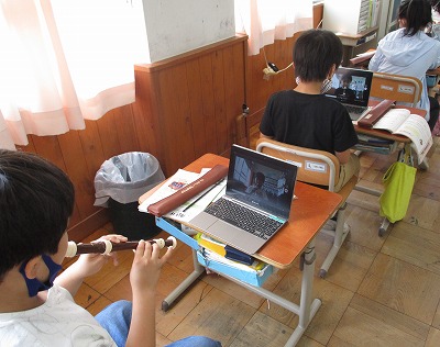 正しくタンギングができていないと,リコーダーをふいているとき,頬が膨らみます。自分ではそれを見られないので,動画をとって確認してみました。「ほんまや,私,頬が動いている!タンギングができていないんや。」などの声が聞こえます。指づかいも確認できました。