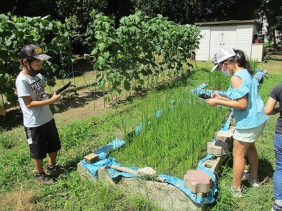 総合的な学習で育てている山科なすと赤米そしてきゅうり。「山階のめぐみ」の学習は,夏休み以降も続きます。なので,今日は夏休み前の状態を写真で記録しておきました。