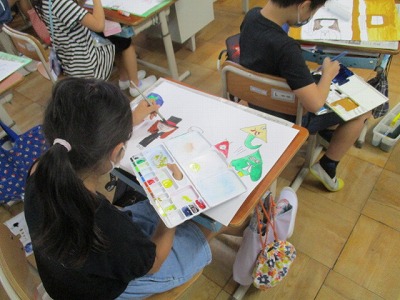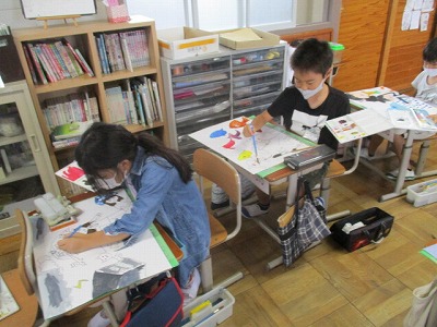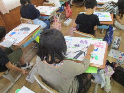 お話を聞いて,好きな場面を選び,想像を膨らませて描いています。