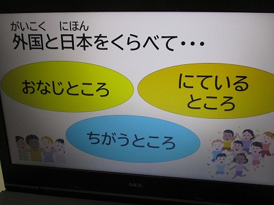 子どもたちが知らない外国のことをスライドを見ながら,話を聞きました。