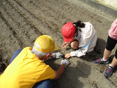 今回で3回目なので,子どもたちは慣れたものです。今年は,正三角形の形に一人3粒まきました。なんと3日ほどで芽が出てくるそうです。