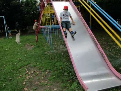みどりの広場にある手形のオブジェにそっと自分の手を合わせたり,総合遊具のすべり台を勢い良く滑ったり,楽しい昼休みを過ごすことができました。