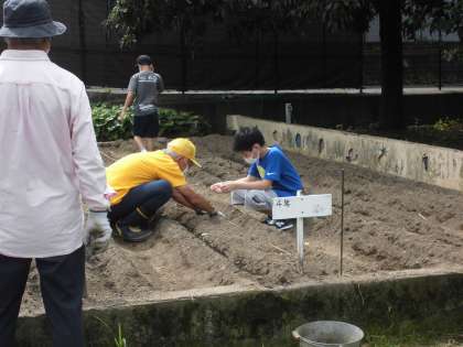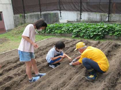 一人三粒,種をもらい,教えてくださる方の指示のもと楽しく植えていました。