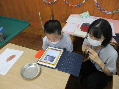 とても小さな種でしたが,「茶色の種だね。」「よく見ると線が入っているよ。」等,詳しく観察ができました。早く種をまくのが楽しみです。