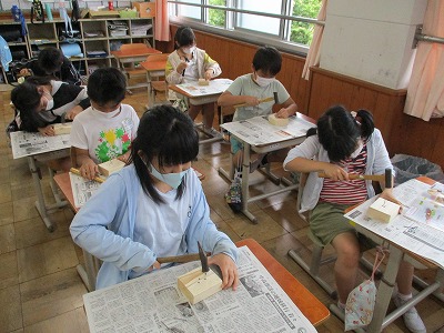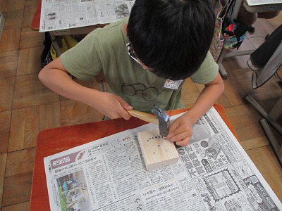 【3年】金づちでトントン釘打ち(図工)
