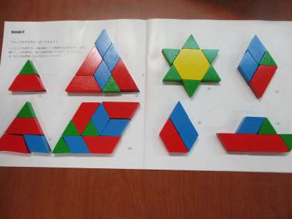 今日は立体パズルと平面パズルにチャレンジしました。見本をよく見て形や模様を作っていきます。