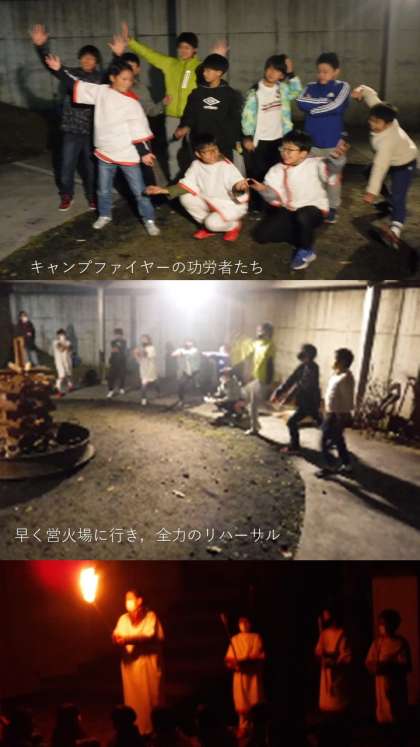 レクリエーション係が,出発前の学校での休み時間をたっぷり使って,キャンプファイヤーの出し物を考えてくれました。とても楽しいゲームばかりで,進行もとてもうまかったです。練習の成果が出ていました。そして何よりよかったのは,5年生全員が「楽しいキャンプファイヤーにしよう」と願って参加したことです。