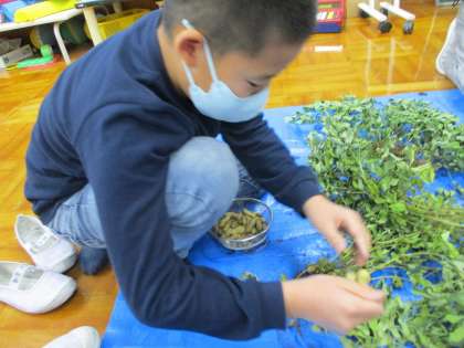 先週収穫した落花生の鞘をはずしました。はずしていくとほんのり落花生の良い香りがしました。