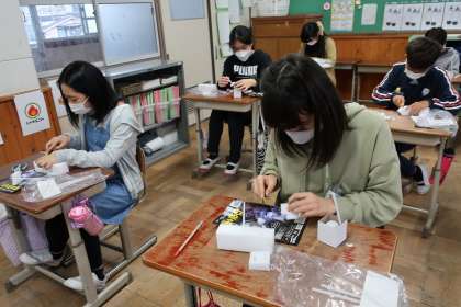 カッターで削ったり,切ったりしたスポンジに光を当てたり,ストローに光を通したりして見え方のよさを味わいました。きれいに切れなかったスポンジでも,組み合わせていくと,味のある自分だけの形ができていました!