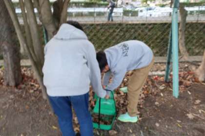 今日から掃除時間で,班ごとに落ち葉拾いが始まりました。