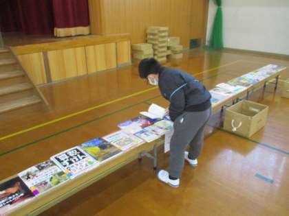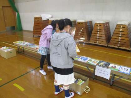 子どもたちは,「これ,面白そう」「このシリーズ好き!」などと言いながら,嬉しそうにいろいろな本を手にしていました。じっくり見ながら学校においてほしい本を選びます。たくさんあるので,1冊に決められない様子でした。