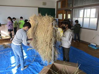 稲刈りの時に,三間さんから「神様に感謝してお米を食べるんだよ」と教えていただいたことを思い出したようでした。