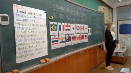 それぞれの国で食べられるものや訪ねることができる場所も,外国語科の学習を通して学べ,世界の国に子どもたちは興味がわいています。
