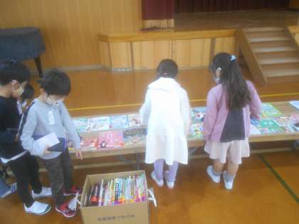 15日(月)に選書会が行われました。自分の好きな本を思い思いに選んでいました。たくさんの本を目の当たりにして「めっちゃいっぱい本がある!」と喜んでいる姿が印象的でした。