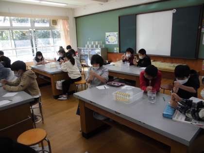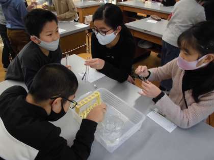 また,試験管に石鹸のまくをはり空気の体積が小さくなっているのか大きくなっているのかを実験しました。