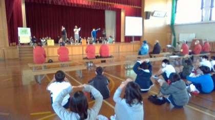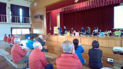 今日は,わくわくフェスティバルで発表した「命のくらしを守る〜日々の備え」を,みまもり隊さんや自主防災会の方々に向けて,再度発表しました。