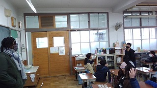 初めは,キーン先生について知っていることを振り返ります。ジャマイカ出身,日本に2日間かけて来た,とんこつラーメンが好き…など。ラーメンが好きというところは,一緒だー!と喜ぶ子も。