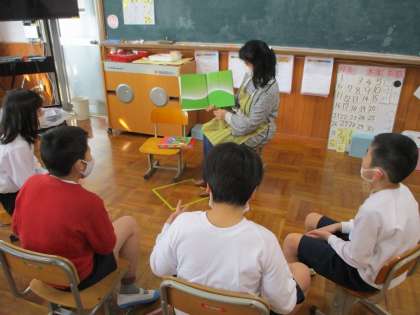 学校司書の山口先生による絵本の読み聞かせがありました。谷川俊太郎さんの絵本を2冊読んで下さいました。「ココロのヒカリ」と「そしたら そしたら」という絵本です。