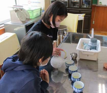 家庭科の学習で,班で協力しお茶をいれる実習をしました。