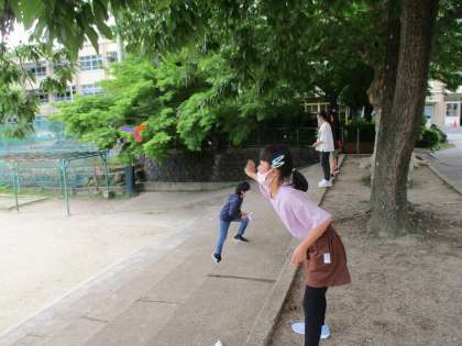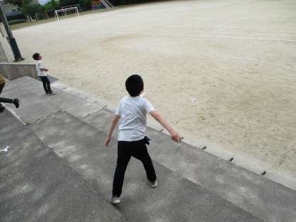 スタンドに出て飛ばしてみると・・・弧を描いてかえってきました。オリジナルのブーメランの完成です!