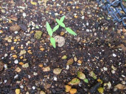 今日こすもすのプランターを見に行くと・・・小さな小さなししとうの芽が出ていました。なかなか芽が出なかったので心配していましたが,ようやく芽が出て一安心!